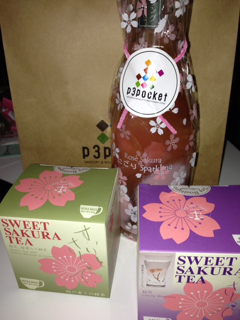 お買い物に立ち寄ったところ、エキナカに新しい店ができており、ツボをくすぐる酒とお茶がずらり。ホワイトデーも兼ねて、桜のスパークリングワインと桜の葉っぱ入りの緑茶と、桜湯のもとを購入。