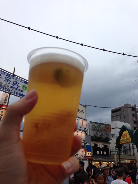 景気付けにかぼすビールで乾杯。