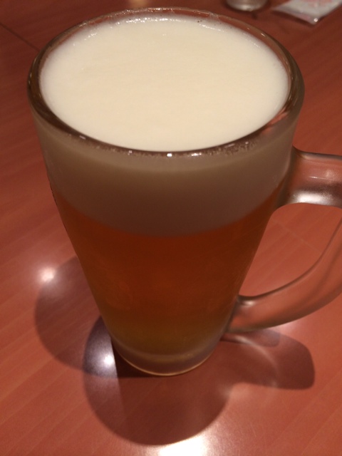 実況中継 Jug of beer 2014/06/29 Fuji 買い物帰りが少し遅くなりそうな時のお楽しみ。 ジョッキ生付きの晩飯。 この一杯で楽しい口髭を作るために生きている・・・かどうかは定かでないが、「口髭」に対する娘のツッコミの頻度が増えてきたような気がする。 呑んだら車の鍵一式は嫁に預ける。 こういうことができるほど運転に長けた嫁は、世間様では少数派らしい。
