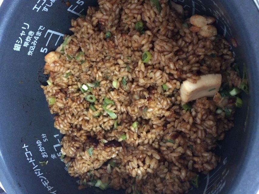 土曜の夜のお料理は、海鮮炊き込みでスタート。