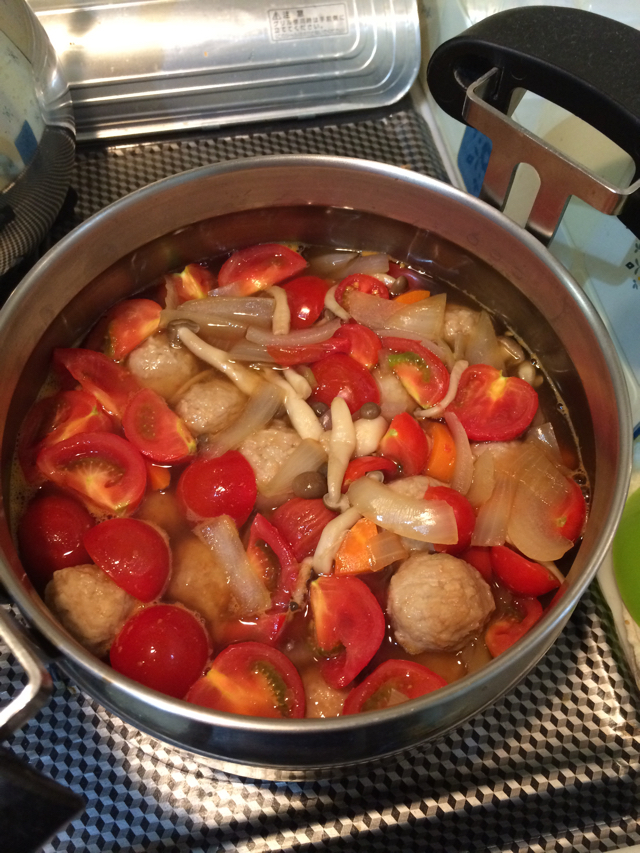 野菜室のヌシとなりつつあったトマトとシメジを使ってカレーを仕込む。