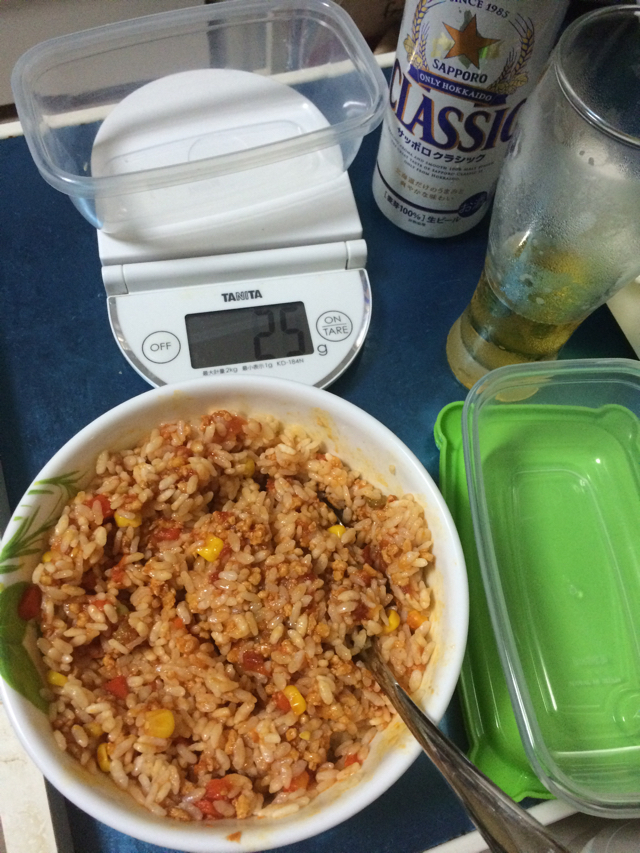 週の後半分のお弁当の主食ストックがなかったことがわかり、先日仕込んでおいた冷凍ストックのトマトソースで混ぜご飯を仕込む。