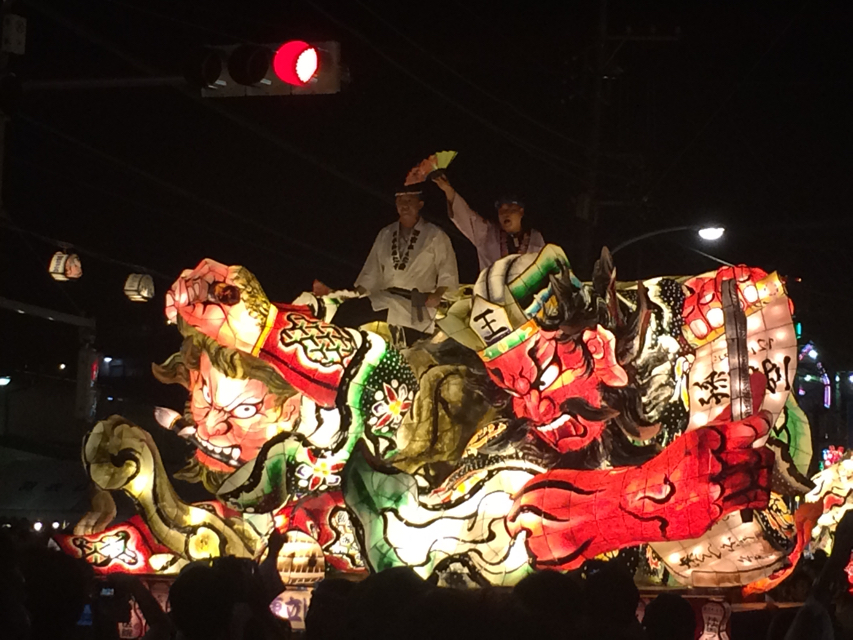 交通整理は別途地上にいる誘導係がおり、ねぶた上からやっているわけではないが、信号機は止めずに祭りを動かしているので時折「マッテローヨ」「イッテイーヨ」に見えることもある・・・かも。