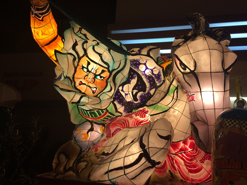 これは「金魚」と呼ばれているとかで、昨年は見かけなかったが、青森黒石市のねぶた会場から直送されたてきたものの一つなのかは定かでないが、川中島の謙信vs信玄の三太刀七太刀をかたどるものなど若干みかける新手とおぼしきものは、直送品かもしれない。