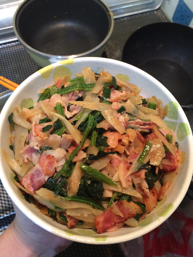 実況中継 Deep-fry 2015/08/23 Fuji 久々に揚げ物。 半年ほど前に天ぷら油の回収ポットを購入していたが、さっぱり味や薄味好きな我が家にあってはようやく出番がやってきた。鉄鍋もようやく相応の活躍ができる。 冷蔵庫のヌシとなっていたレンコンを、素揚げの黒酢あんかけにし、勢いで頂き物のキュウリも全量シメジ共々炒め物に加工。炒め油は素揚げの残り油をそのまま流用。 揚げ物はどれだけブランクが空いたか、自分でも覚えがない。 幸い、揚がりっぷりの感覚は耳が覚えていてくれた。また、やってみよう。