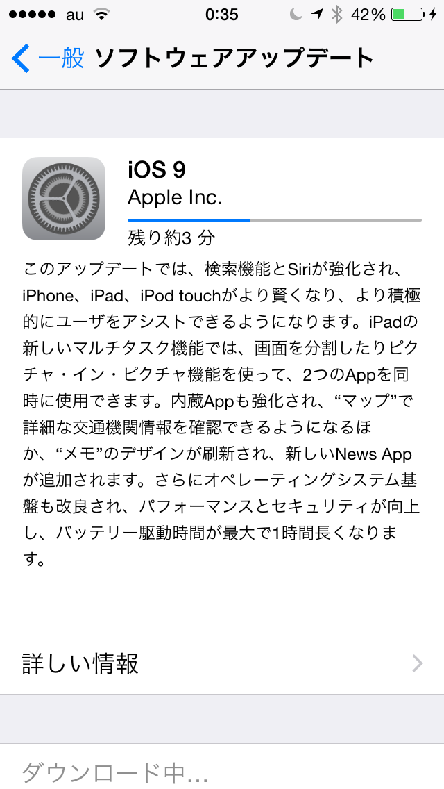 実況中継 Ripples 2015/09/19 Fuji 前日より手元のiPhoneにてiOS9へのバージョンアップが可能となったが、大好評御礼なのか1日経ってもなかなか終わらない。 嫁のiPadとの合わせ技で、WiFiルーターへの「3日で3GB制限」は結構きいている様子。完了までは気長に待つか・・・ それが影響したのかはさておき、我が家のWiFiルーターはすでに1日1GBペースを軽く上回る利用状況。 今夜もメンテナンスリセット開始。
