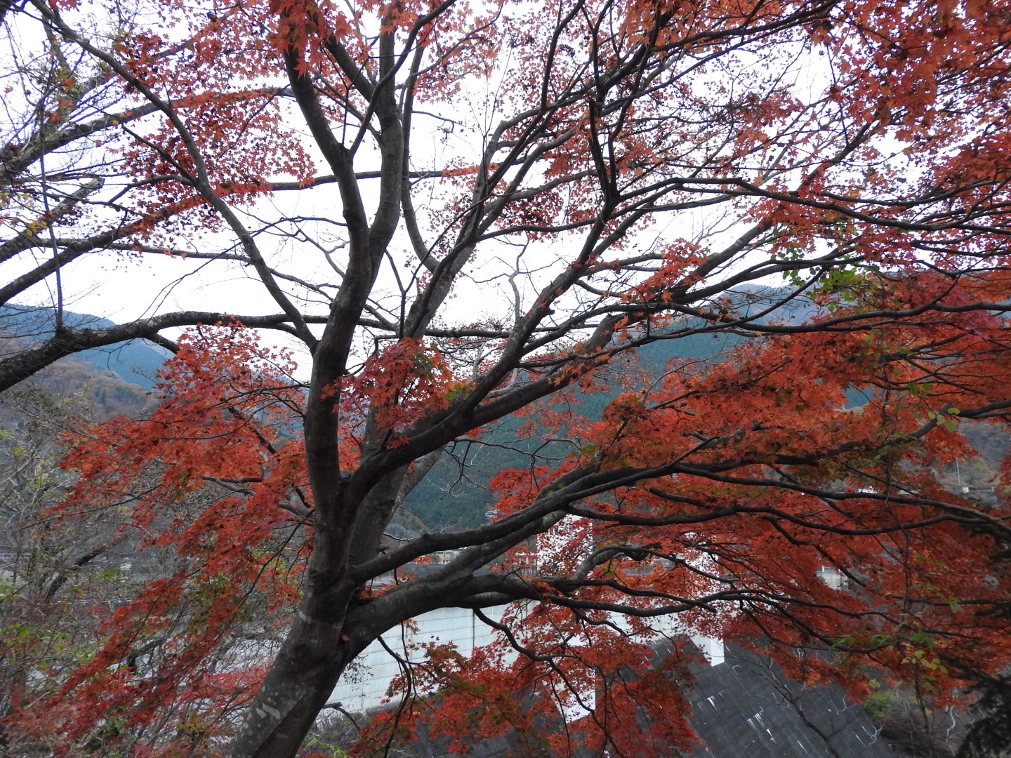 奥多摩の湖畔にて紅葉狩りに出る。 今年はまだら模様。