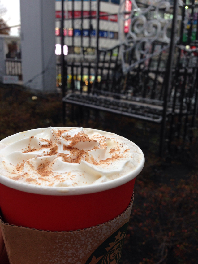 帰り道に昭和記念公園周辺の紅葉を見ながらスタバのジンジャーブレッドラテで暖を取る。