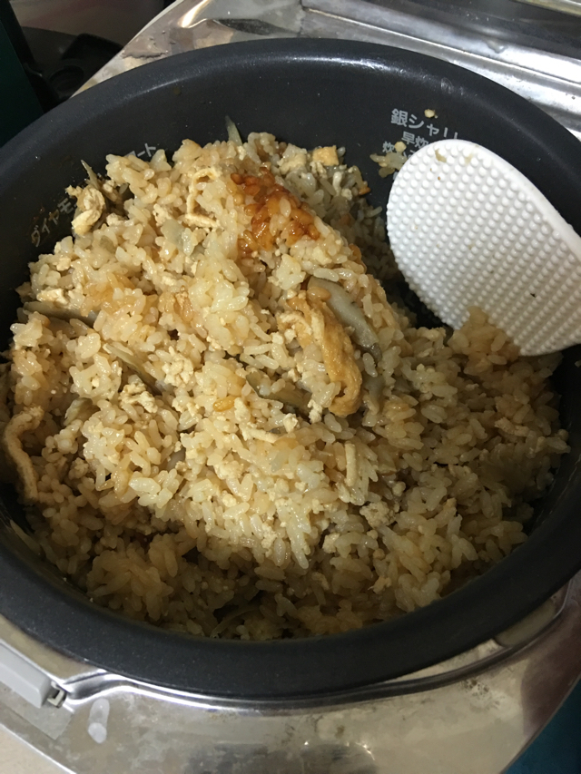 実況中継 Potato salad 2016/02/13 Fuji 今夜もストックの仕込みにかかる。 手始めに、炒めた鶏ゴボウと刻み薄揚げとだしつゆで炊き込みご飯。香り付けにゴマ油少々を加えて仕上げを電気釜に委ねる。 その間に、ポテトサラダを仕立てる。 冷凍ストックのマッシュポテトに刻みハム、冷凍野菜ミックスを混ぜ、マヨネーズと余っていたドレッシングを加えて味付け。 炊き上がりの頃合いに、サラダも出来上がり。野菜分を多めにしたこともあり、お子様たちの反応が気がかり。特にムスコ。