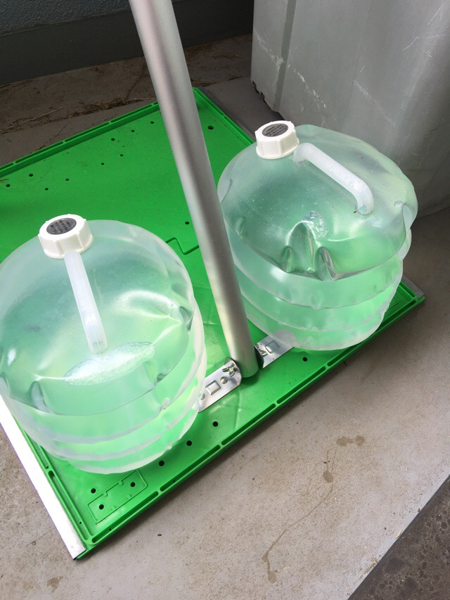 実況中継 Water bag 2016/05/15 Fuji こいのぼりと兜飾りの撤収完了。よくよく見るとこいのぼりの土台を押さえる水の袋は災害時の給水に使えそう。半月以上にわたり水道水を入れたままだったが、空気を入れずに封をしたのが効いたのか、濁りなどは発生していない。密封度合いもなかなかよさそうだ。 先刻の熊本の地震に限った話ではないが、給水車を入れてもその蛇口から先、水を持ち帰ってもらう手段が乏しく、用意した袋がたちどころにはけて水の配布が滞る・・・といった話は耳にする。 この袋は非常時の備えとして、埃が入らないようにキレイに乾かしておくとしよう。