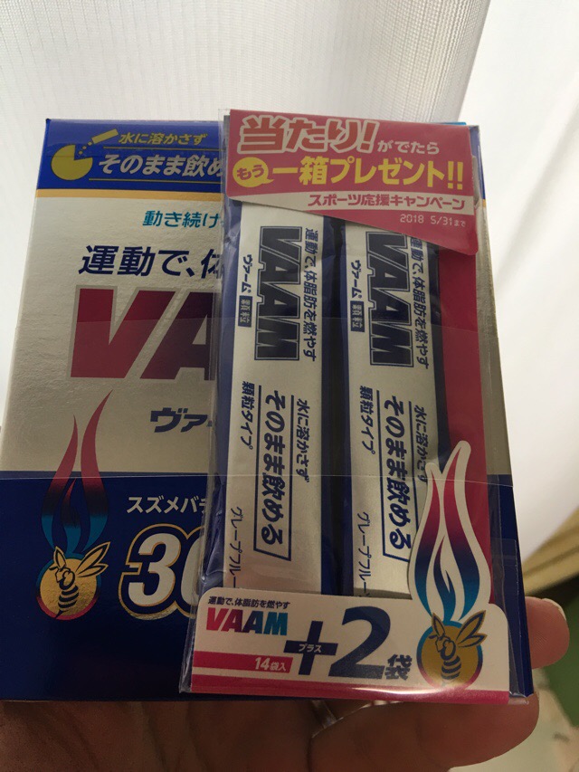実況中継 Lot 2016/06/19 Fuji 週一定例のトレーニングの際には必ず飲んでいるVAAMの顆粒におまけの2本とクジがついてきた。 当たるとは思ってもいないが、当たればもう1箱もらえるらしい。 まだくじの部分は開けていない。念のため締め切りだけは確認しておこう。
