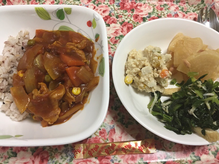 実況中継 Transfuse 2017/04/07 Fuji 週末はカレー曜日…と決めたわけでは無いが今夜も肉野菜カレーの晩飯。冷凍大根とツナの煮物と、お弁当作り置きの余りを添えて、青物の量としては十分。 冷凍大根の煮物は味の染み込みが一晩煮込んだくらいに匹敵するかも。隠し包丁要らず。