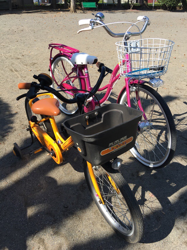 実況中継 Pedal pusher 2017/04/23 Fuji 娘の新車投入に伴い、ムスコも三輪車から補助輪付き自転車に乗り換え…ではあったが、ペダルを漕ぐ力がないのか全く前に進まない。三輪車もそうだったが、ペダルで進むまでの道のりは長そうだ…。 一方の娘は早々に乗りこなしたが。
