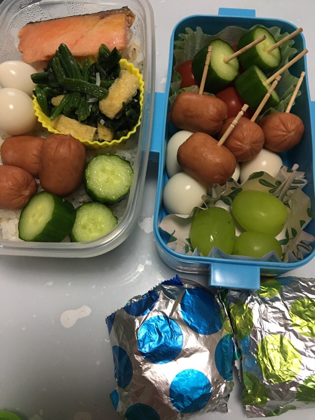 実況中継 At rehearsal 2017/10/04 Fuji 親子弁当の日…ではあるが、再びのおにぎり弁当。 先週は娘の校外見学、今週はムスコが遠足の練習ときた。こちらはムスコ弁当の余りとストックからの焼き鮭とおひたしを詰めて出発。 この後ムスコは年少組さんたちとお出かけしたのち、後日の遠足にむけて園内で弁当を広げる練習だとか。 結構な念の入れようである。
