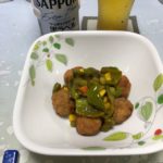 実況中継 Interval 2019/07/28 Fuji 花火見物の合間に肉団子を揚げ、炒めたピーマンと冷凍野菜で黒酢のあんを作る。花火が終わり次第、あんをかけて出来上がり。揚げもののはずなのに、肉団子からは油がしみ出ない。謎だ。
