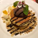実況中継 Combine 2019/08/03 Fuji 娘の夏祭り出演の打ち上げと、一足先に爺婆の元へ行く子供達の壮行を兼ねた外食ついでに、嫁共々バースデークーポンの恩恵にあずかる。パフェの材料を使ったとみえるパンケーキのデコレーションは、毎年のことながらボリューム十分。おかずは単品ですむ。