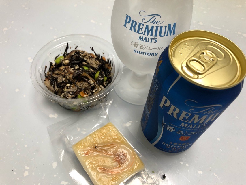 実況中継 Flat 2019/09/04 Fuji 当夜は少し遅めの晩酌。富山のお土産蒲鉾の中から白海老を選択。買ってきたひじきとともに、プレミアムモルツを開ける。平たい形の蒲鉾は、富山にあっては珍しいかもしれない。白海老は鮮度の良いうちに生で食べてしまうことが多く、加工品は富山の日常では余りお目にかからないが。