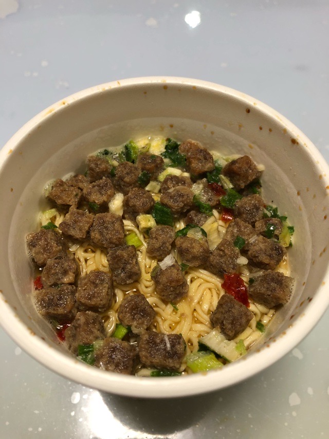 実況中継 Accelerated …? 2019/10/01 Fuji 久々の謎肉祭。どのような仕掛けなのかは定かでないが、ペッパーが入ったことにより元々の醤油の濃さが加速しているように感じる。この組み合わせは何かの味付け、しかも減塩に降った方に使えるかもしれない。お子様向けの品には使いづらいが。