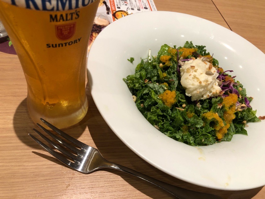 ケール入りサラダで一杯の買い物帰り。今回もそんなに苦くない。スーパーなどで手軽に手に入れば言うことなしだが、そんなに見かけない。