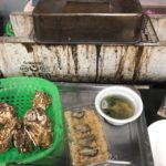 実況中継 Unshelled 2019/11/14 Fuji 晩飯は港近くで牡蠣の炭火焼。まだ若干仕事が残っておりノンアルコールではあったが、大きさは十分にあり、存外にお値打ち。直火焼き故か、よく殻がとびはねるイキのいい代物。結構な大きさだ。