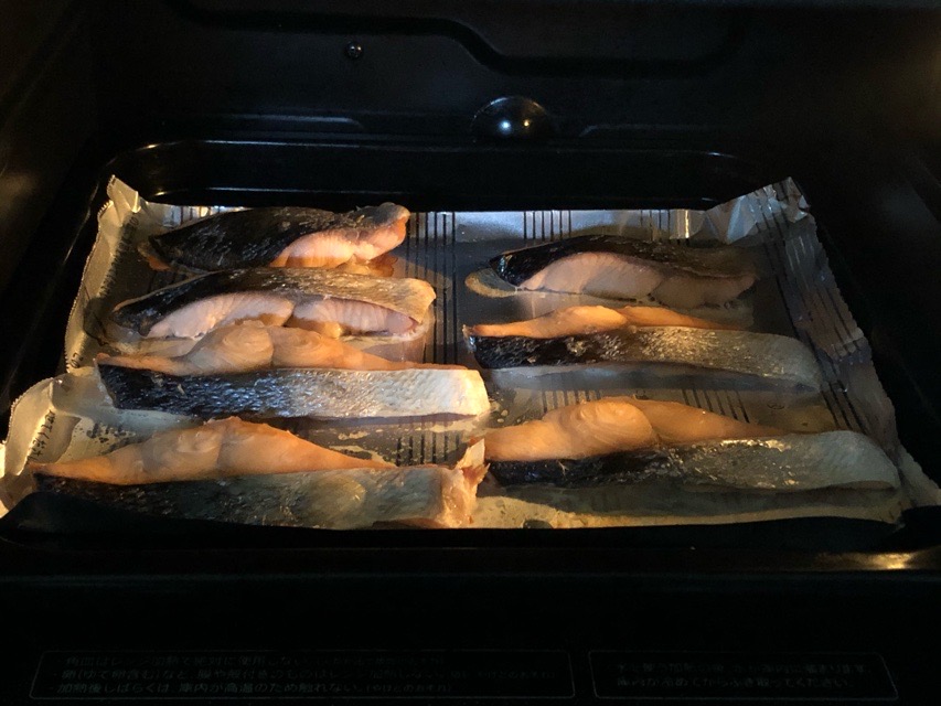 実況中継 Attempt 2020/01/27 Fuji 作り置きの仕込み。グリルで鮭と鰤の切り身を焼く合間に刻みキャベツの甘酢漬けも作る。焼き魚はお弁当にも転用できるよう、半分に切って保存。他の作り置きと組み合わせて1週間の弁当と晩飯を回したいところだが、目論見通りとなるかは定かでない。