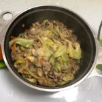 当夜は肉野菜炒め。肉は焼肉のタレの余りに予め漬けてあったが、お子様達の青椒肉絲を食べてみたい、の声をヒントに元の切り落とし肉を細く刻んでみる。火の通りが早まった他、肉汁の溶け出しが多くなり、キャベツや舞茸に絡んでスープ共々ご飯のよいお供となった様子。
