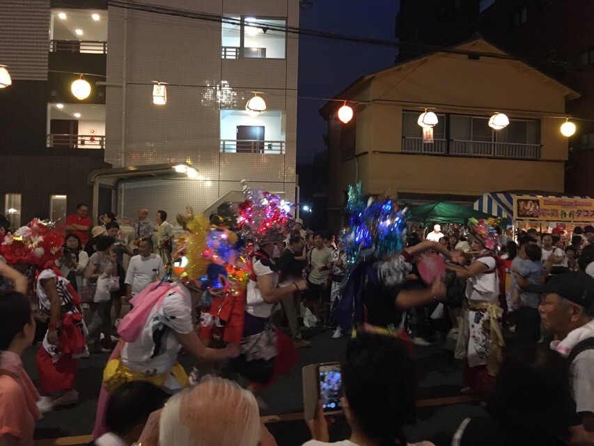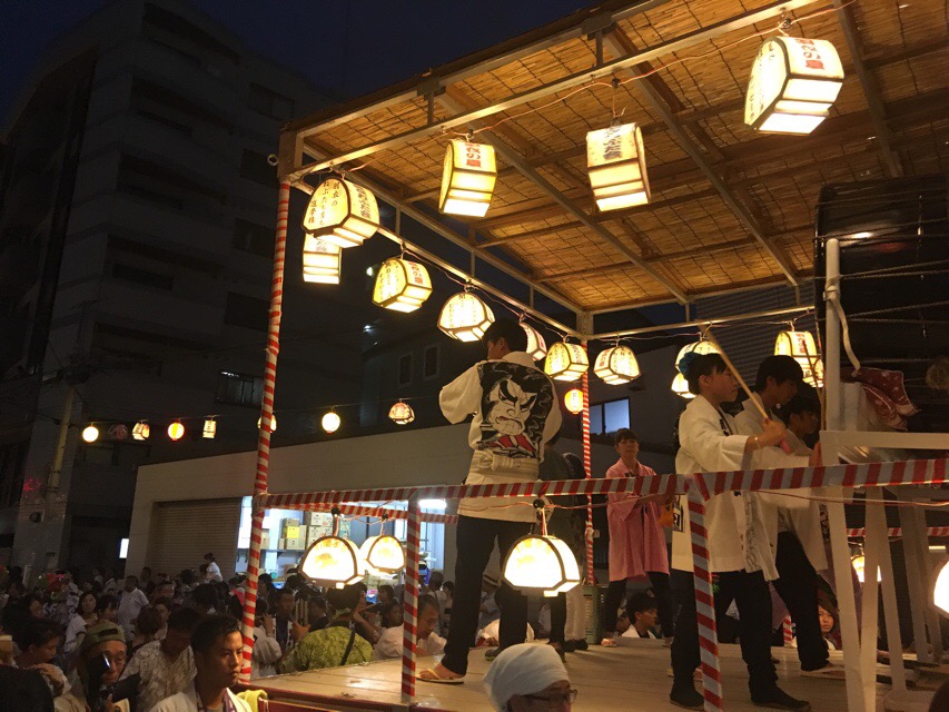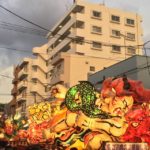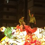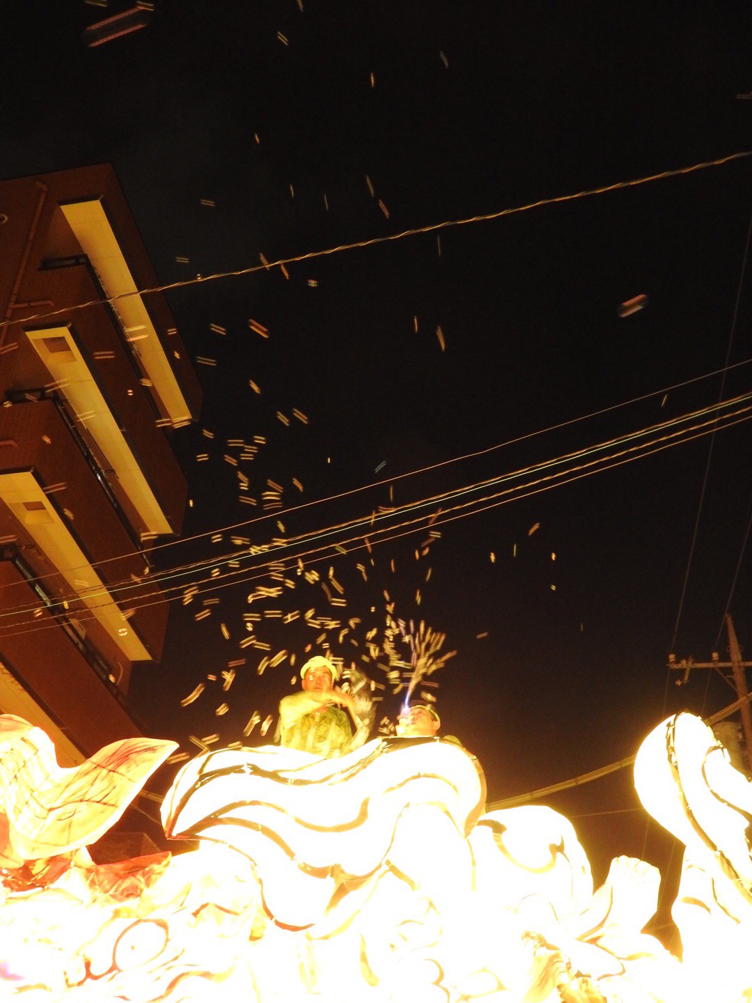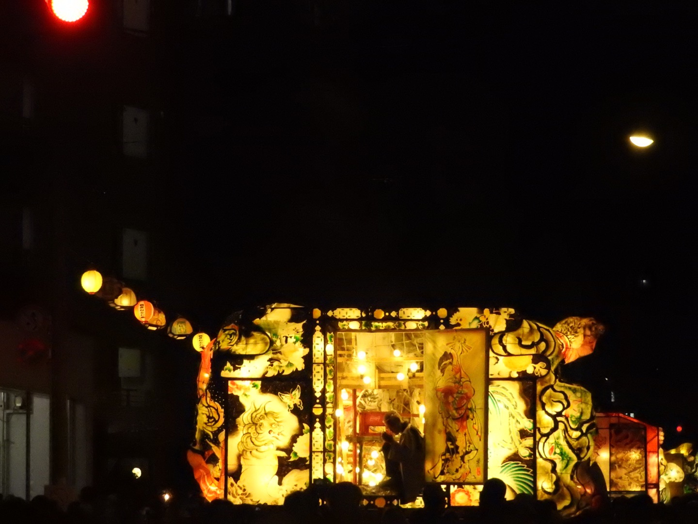 昨日曳き回したねぶたを、今日はお子様たちと見物。今日は適度な夕暮れ。