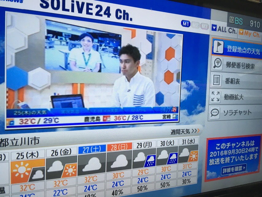 連日どこかで見ていたBS910の solive24が来月配信終了の報。