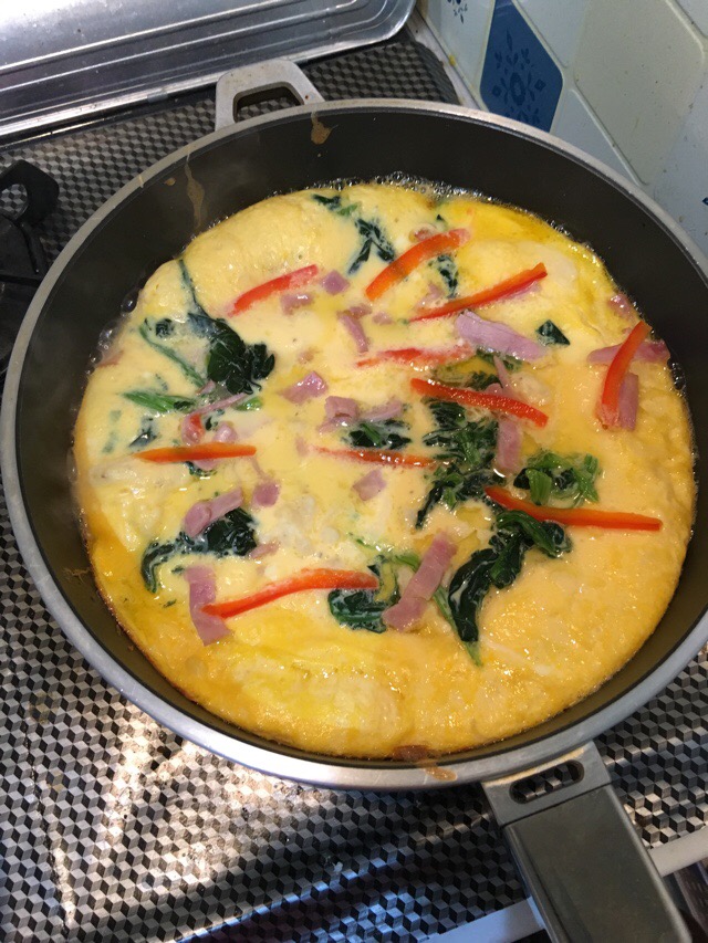 今夜はキッシュオムレツと明太子を焼く。どちらも蒸し焼きにしたので外はこんがり、中はプリプリに仕上がる。